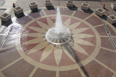 pavers form intricate patterns in many of the plazas and fountain areas, they also delineate street