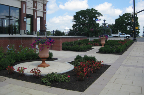 concrete paver walk surfaces blended seamlessly into lush planting beds, flowing ramps and retaining