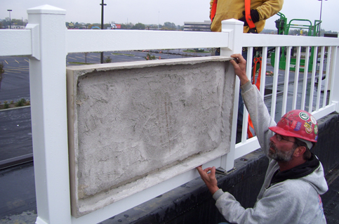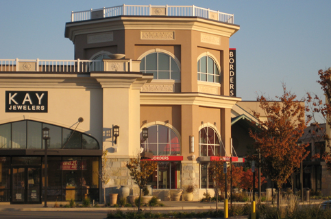 A new plaza in the Lifestyle Addition of the Castleton Square Mall features custom frieze panels, escutcheon plates, flower pots, and a water feature by SFC.