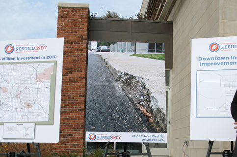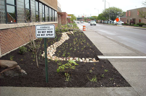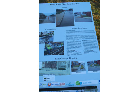 The project incorporated 2,650 square feet of pervious concrete sidewalk, 900 linear feet of pervious concrete curb and gutter and approximately 750 square feet of rain garden into a larger Rebuild Indy initiative. These GI retrofits manage runoff from approximately 60,000 square feet of impervious surface and will remove over 1,350,000 gallons of stormwater from the CSO in an area that did not have any existing stormwater infrastructure in place, in a typical year, while creating a safer corridor for pedestrians walking along and across Ohio Street.